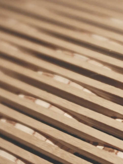 Wood and engineered wood are made flexible with a patented incision process. Complex incisions allow textile-like properties plus create transparency and sound absorbing properties unexpected from wood products.